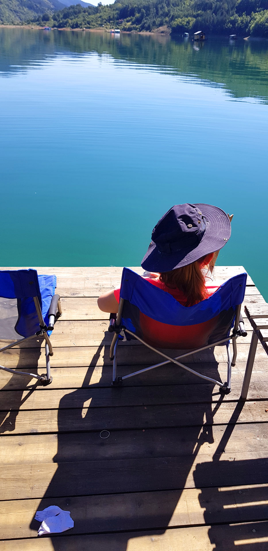 Na terasi su sto i stolice, a pogled na jezero je idelan za uživanje u jutarnjoj kafi.